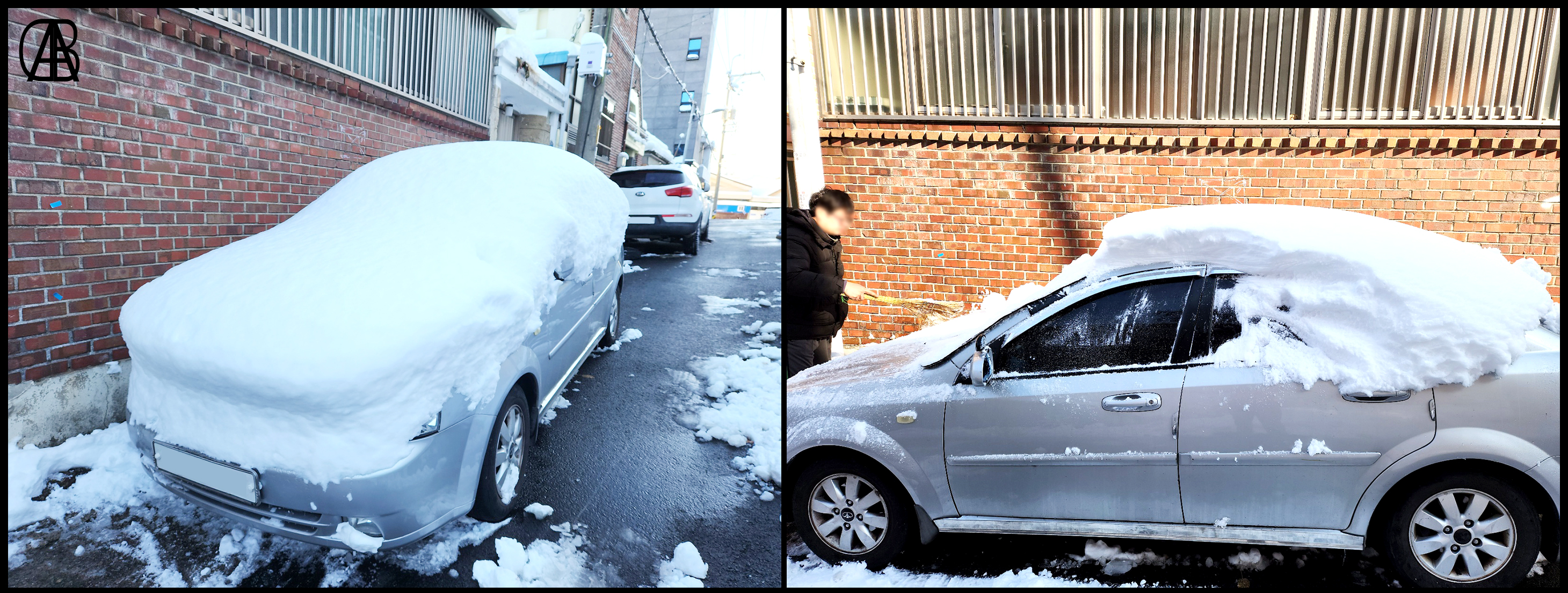 일요일! 크리스마스 오후에 약속이 있어 큰 길은 제설작업을 다 했으니까 하는 안일한 생각으로 차에 눈을 치우기 시작했어요...
