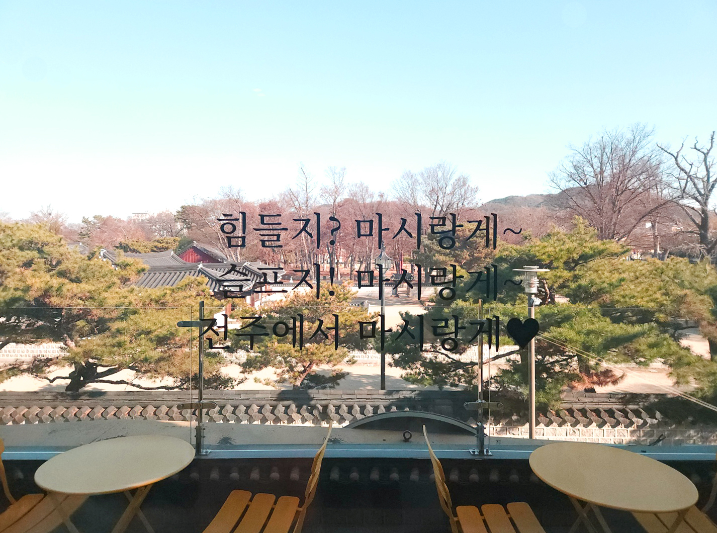 창가 쪽에 앉으면 전주 경기전이 한눈에 보여서 참 예쁘더라구요 ㅎㅎ