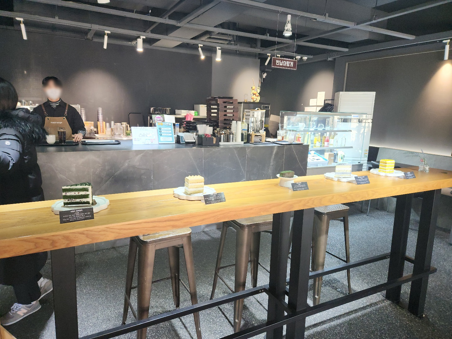 카운터 바로 앞에 케익모형이 전시 되었있어요 ㅎㅎ